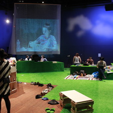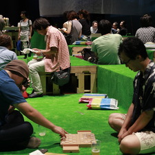 アサヒ・アートスクエアにて6月13日より開催しておりました「すみだ川アートプロジェクト2015」が、7月31日をもって閉幕いたしました。約25もの「連」とともに、〈誰もが表現することを楽しむ場〉を作った49日間。「江戸を遊ぶ--江戸のもくろみ」と銘打ち、人々がもくろみ企てた川沿いの料亭をイメージした「目」のプランによる会場セットの中、毎日、演劇やパフォーマンス、音楽やトークイベント、ワークショップなど、様々な企画が繰り広げられました。ご来場くださった多くの方々、参加された「連」や各アーティスト・団体の皆さまありがとうございました。すみだ川アートプロジェクト実行委員会主催の企画については後ほどご報告させていただくとして、閉幕のお知らせと、「連」の皆さんの企画を画像にていくつか振り返ります。