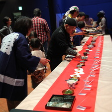 2015年9月18日[金]スクエアわいど【音を感じるプログラム】第二日目「手で触れる」を開催しました。 当日スケジュール: 18:00 〈フードワークショップ〉:パスタ麺作り/講師:宮浦宜子[Life on the table] 18:40 〈ハンドマッサージ〉講師:RUMIKO[Awakening aroma & Healing Salon] 19:30 〈楽器アンサンブル〉Orquesta Nudge! Nudge!× SUMIDA/講師:芳垣安洋 20:30 〈フード&ドリンク〉作ったパスタ麺を食べました--------------------------------------------------------------------------------〈フードワークショップ〉:パスタ麺作り/講師:宮浦宜子[Life on the table] 〈ハンドマッサージ〉講師:RUMIKO[Awakening aroma & Healing Salon] 〈楽器アンサンブル〉Orquesta Nudge! Nudge!× SUMIDA/講師:芳垣安洋 最後に、作ったパスタ麺を皆で食べました。
